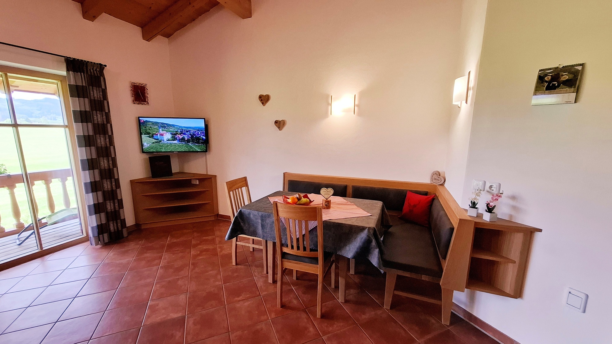 Die 4 Sterne (DTV) Wohnung befindet sich im 1. Stock im Neubau mit Balkon nach Süden mit ca. 50 m², separater Eingang, gemütliche Wohnküche mit Mikrowelle, Spülmaschine, E-Herd, Toaster, Wasserkocher, Kaffeemaschine, Radio und TV, großzügige Dusche mit WC. 1 Schlafzimmer für max. 4 Personen, modern und sehr "hoimelig" eingerichtet.