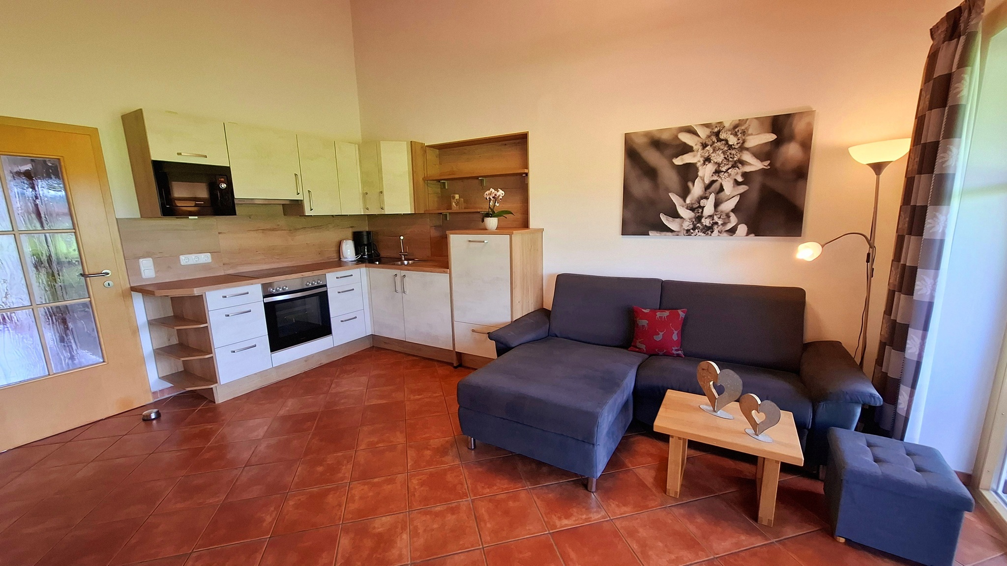 Die 4 Sterne (DTV) Wohnung befindet sich im 1. Stock im Neubau mit Balkon nach Süden mit ca. 50 m², separater Eingang, gemütliche Wohnküche mit Mikrowelle, Spülmaschine, E-Herd, Toaster, Wasserkocher, Kaffeemaschine, Radio und TV, großzügige Dusche mit WC. 1 Schlafzimmer für max. 4 Personen, modern und sehr "hoimelig" eingerichtet.